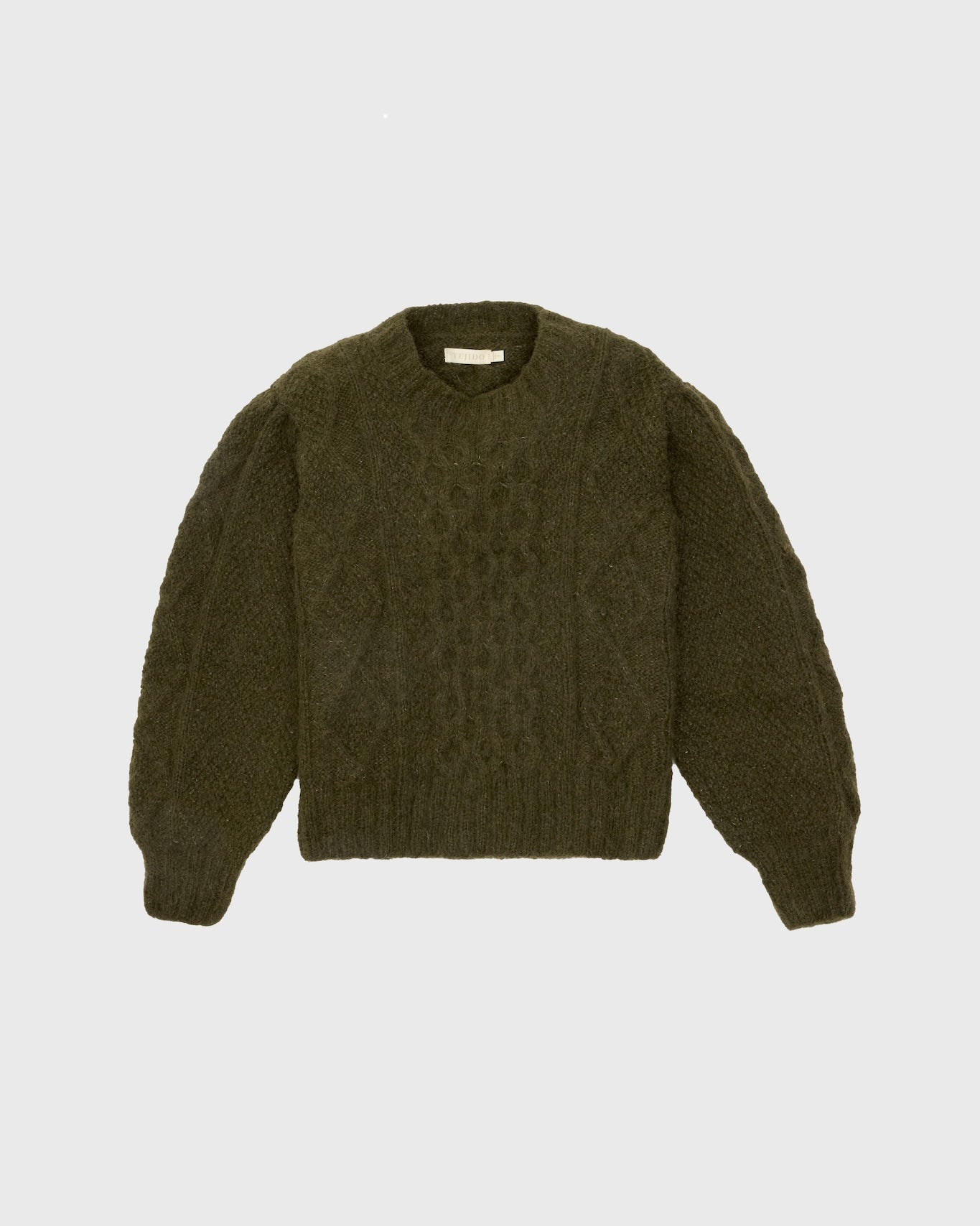 Hand-knit by artisans in Peru from the softest brushed alpaca blend, the Fisher Puff Sweater is a fisherman-style knit with puff shoulder detail, roomy sleeves, and a classic cable knit design.