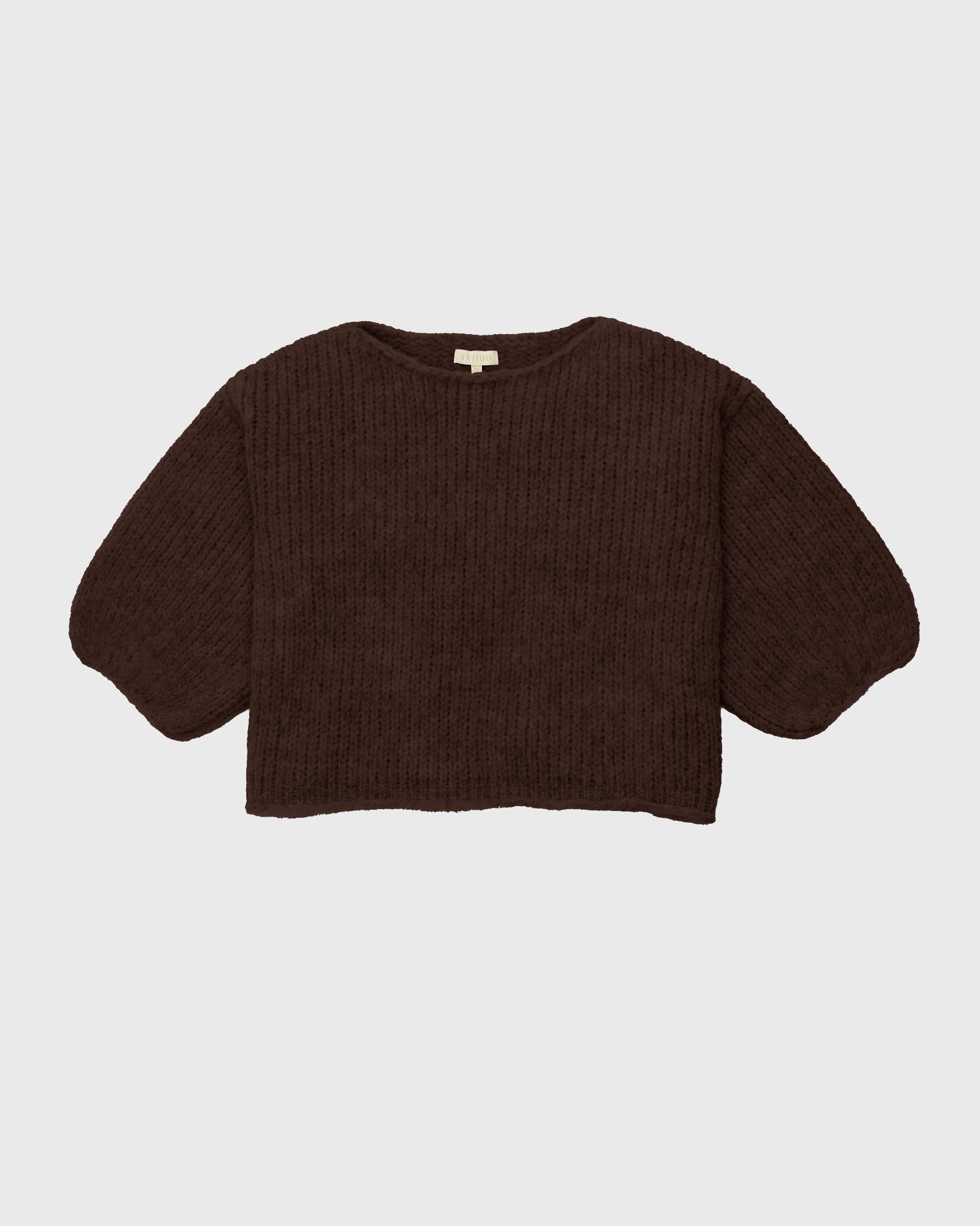 The Jade Pullover, a cozy masterpiece crafted by artisans in Peru. Slight boxy shape, voluminous sleeve detail and soft boat neck line. Now available in a soft Pujpu yarn blend with an easy Jersey stitch, they create a silhouette that embodies both style and sustainability to provide a piece that feels both like an heirloom and entirely of the moment.