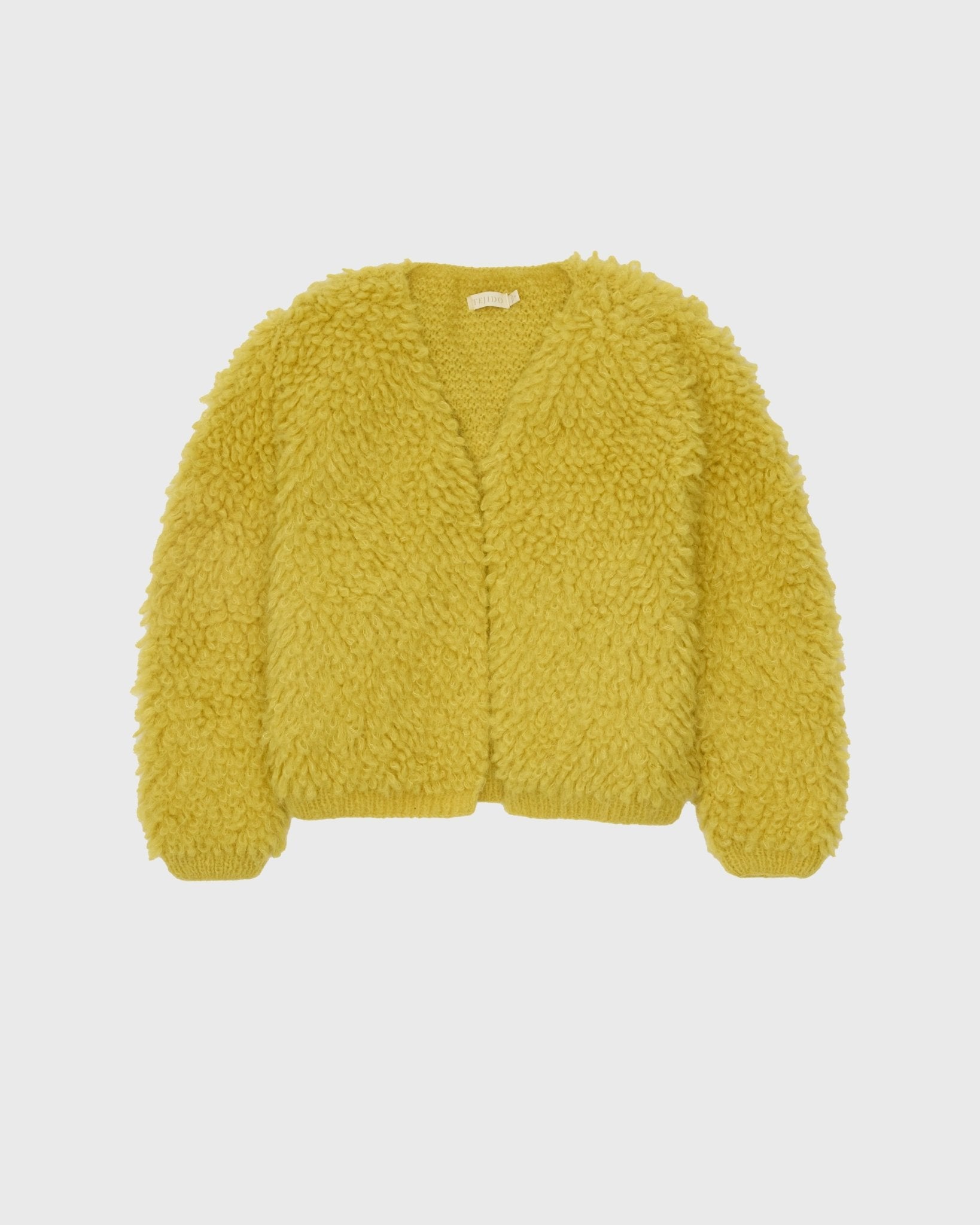 Crafted from lightweight brushed alpaca yarn, the Shag Bomber features a fun loop stitch technique and a classic silhouette. Hitting at the true waist, this knit jacket is perfect for day to night dressing. 100% Handmade by Fair Trade Knitters in Peru!